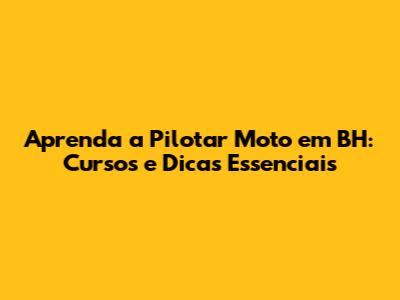 Aprenda A Pilotar Moto Em BH: Cursos E Dicas Essenciais