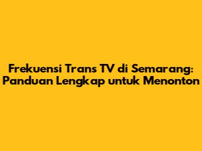 Penting untuk diingat, frekuensi Trans TV di Semarang bisa berbeda-beda tergantung pada penyedia layanan televisi yang kalian gunakan. Oleh karena itu, sebaiknya kalian mencari informasi frekuensi yang spesifik dari penyedia layanan televisi kalian. Kalian bisa mengeceknya di website resmi penyedia layanan, menghubungi customer service, atau melihat informasi di buku panduan.