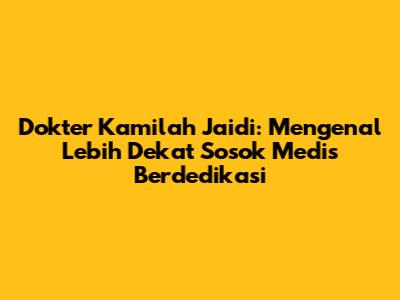 Dokter Kamilah Jaidi: Profil, Praktik, Dan Kiprah Medisnya