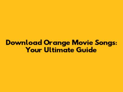 Download Orange Movie Songs: Your Ultimate Guide