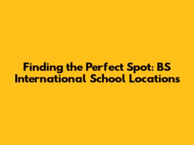 Finding The Perfect Spot: BS International School Locations