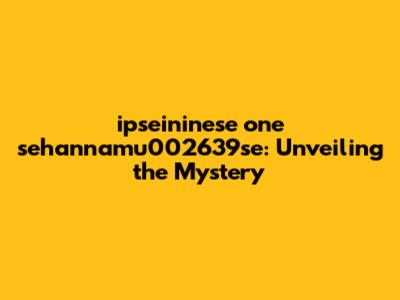 Ipseininese One Sehannamu002639se: Unveiling The Mystery