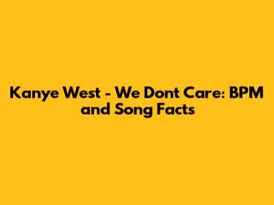 Kanye West - We Don't Care: BPM And Song Facts