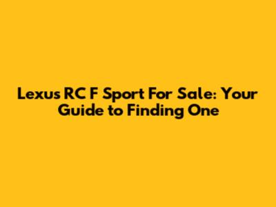 Lexus RC F Sport For Sale: Your Guide To Finding One