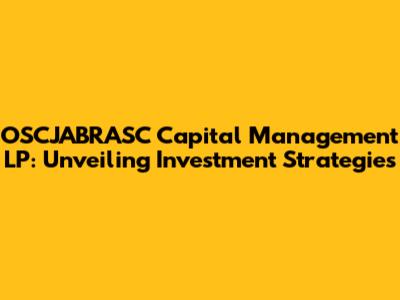 Hey there, investment enthusiasts! Today, we're diving deep into the world of OSCJABRASC Capital Management LP. This is more than just a name; it's a window into the strategies, philosophies, and perhaps even the future of wealth management. For those of you who are just dipping your toes into the investment pool, or even seasoned pros looking for a fresh perspective, this deep dive is for you. We'll be breaking down what OSCJABRASC is all about, what makes it tick, and what you might learn from their approach to the capital markets. So, grab your favorite beverage, get comfy, and let's unravel the intricacies of OSCJABRASC Capital Management LP together. The world of finance can often seem complex and intimidating, but we'll try to break it down, making it easier to understand, with a casual tone. Think of it as a friendly chat about investments, where no question is too basic, and every piece of information is valuable. Let's get started.