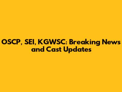 OSCP, SEI, KGWSC: Breaking News And Cast Updates