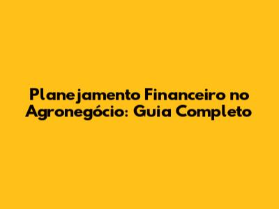 Planejamento Financeiro No Agronegócio: Guia Completo
