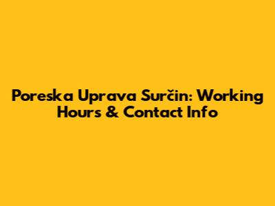 Poreska Uprava Surčin: Working Hours & Contact Info