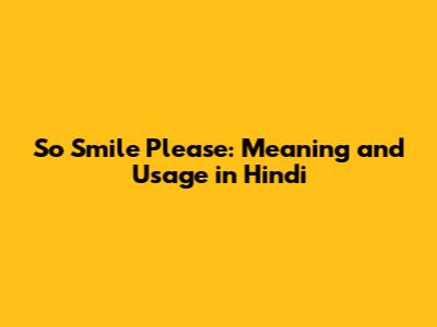 So Smile Please: Meaning And Usage In Hindi
