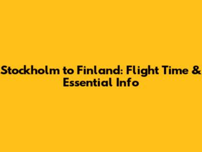 Stockholm To Finland: Flight Time & Essential Info