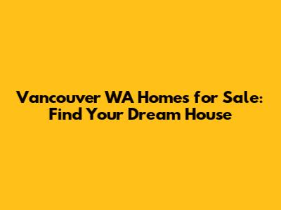Vancouver WA Homes For Sale: Find Your Dream House