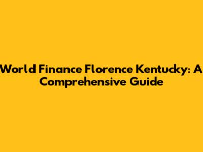 Hey everyone! Today, we're diving deep into World Finance in Florence, Kentucky. This is your go-to guide, covering everything from what World Finance is all about to the specific services they offer in Florence and how you can make the most of them. Whether you're a local resident, or just curious about financial services in the area, we've got you covered. We'll break down the essentials in a way that's easy to understand, so you can make informed decisions about your finances. So, let’s get started, shall we?